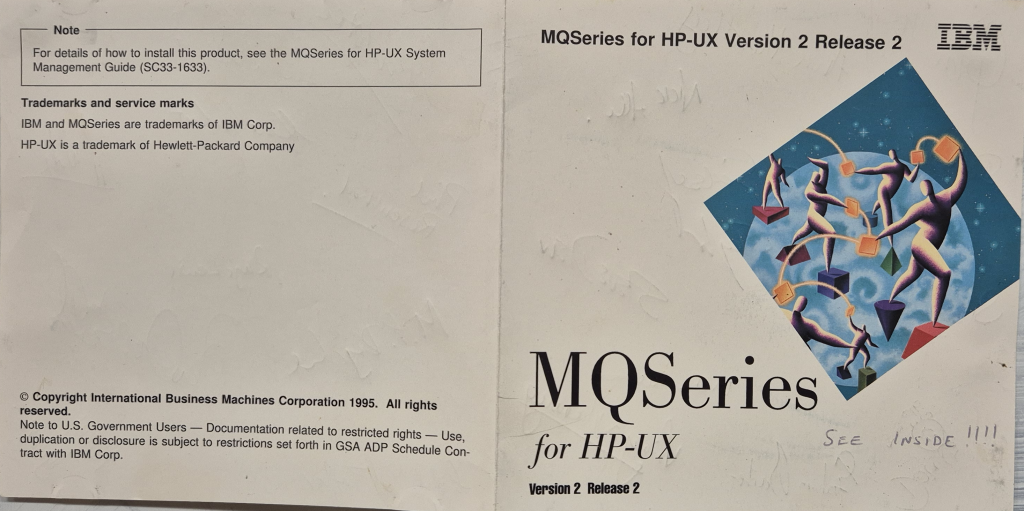 I did some hunting in my archives, and found this souvenir CD cover from the first version of MQ we did for HP-UX in 1995: